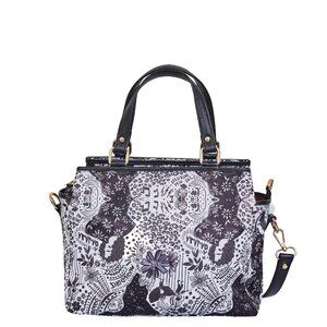 Nylon Fabric Printed Top Handle Satchel or Crossbody Bag- This design showcases a stunning interplay of white and black fabric, creating an elegant and timeless print. Perfect for those who appreciate classic contrasts with a modern edge.