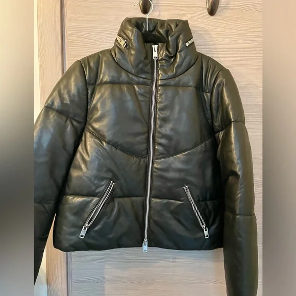 Stay warm and stylish with this sleek black puffer jacket. Perfect for any occasion.