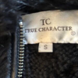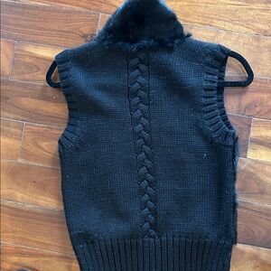 Stylish black faux fur vest with a front zipper. Features a textured design.