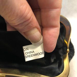 Black Rayon Clutch Bag with Gold Trim. Very nice purse.