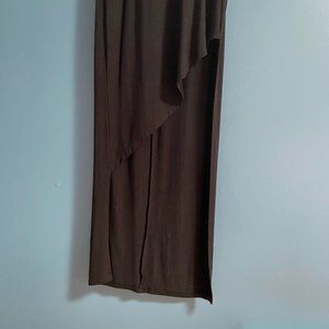 This dress is new and never worn. it is light flowing t-shirt type material, has open panels in the back and a funky cut out in the front. I love it but am really short so its a bit too long for me.