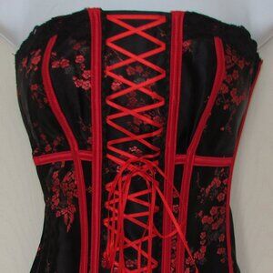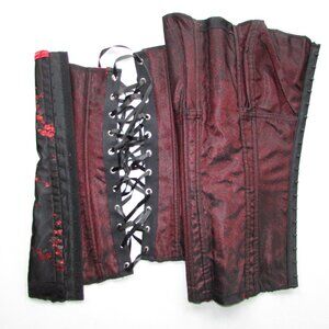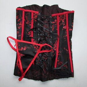 Black Red Asian Themed Jacquard Corset Set - NEW