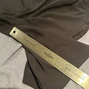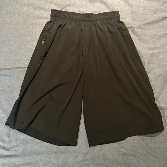 Very comfortable with a convenient side zippered pocket. 9” inseam Minor flaws in the shorts are noted in the photos, and they are not noticeable when wearing.