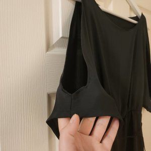 Black Relaxed Knee-length Dress with Shoulder+Arm Cut-outs