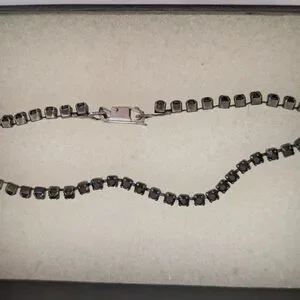Delicate bracelet with square black rhinestones. Silver-tone settings and clasp. Sleek, versatile piece. Great for layering or as a subtle statement.