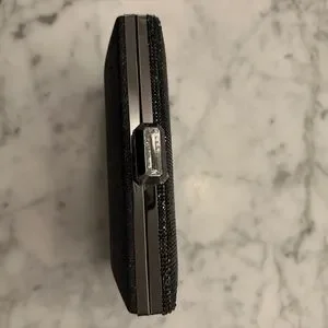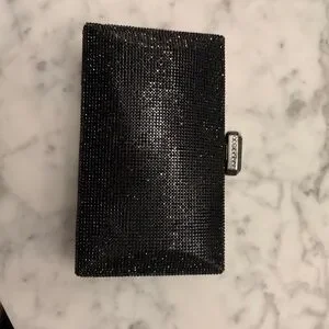 Elegant black rhinestone clutch with a sparkling clasp. Perfect for evening events.