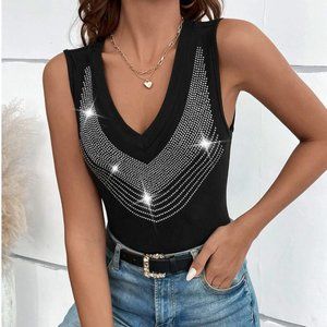 Black Rhinestone Tank Top