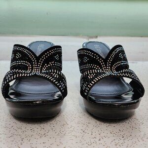 L'Amour Black Rhinestone Sandals. Gently preloved, though I replaced a few missing rhinestones. Souls are in great condition, very little if any wear. Size 40 EU or aprox. size 8 US. Will toss in a bag of extra rhinestones also! No Box.
