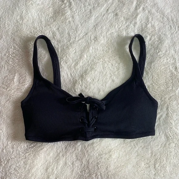 Black Ribbed Bikini Top