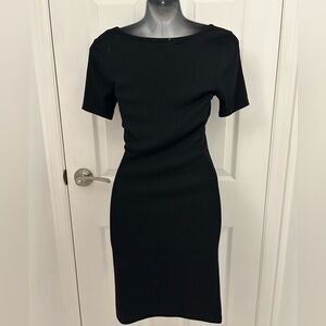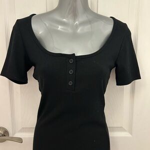 Black Ribbed BodyCon Dress with Buttons, Sz S