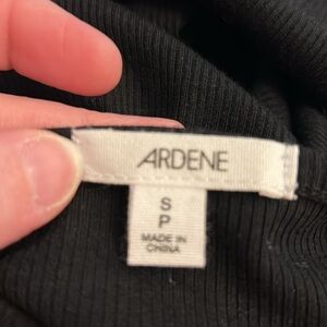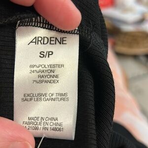 Super cute and comfy, black body on dress with buttons at top and shirt sleeves. Casual or dress it up for work. Cute with heels or flip flops. 14” pit to pit, unstretched. Stretch allows several more inches. 12” across waist unstretched. Stretch allows for several more inches across. Dress goes to knee.