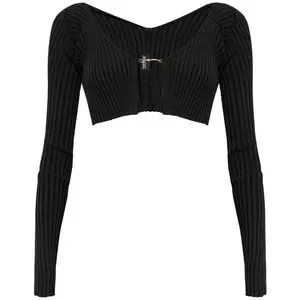Stylish black ribbed crop top with a chic design. Perfect for any occasion.