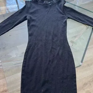 This elegant black ribbed dress is perfect for any occasion. Its sleek design offers a flattering fit, making it a versatile addition to your wardrobe.