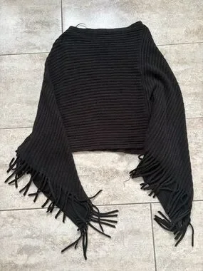 Black Ribbed Fringe Poncho