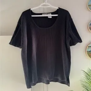 Cute black ribbed knit top. Perfect for any occasion, this versatile piece offers both comfort and style.