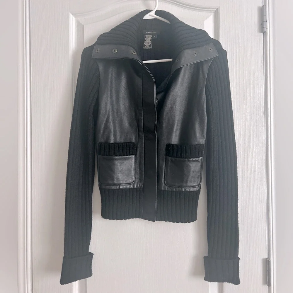 Elevate your style with this chic black ribbed leather jacket. Perfect for any occasion, it combines comfort and elegance.