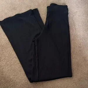 High-rise, stretch waist, straight leg with a small flare at the bottom.