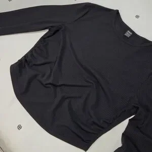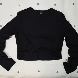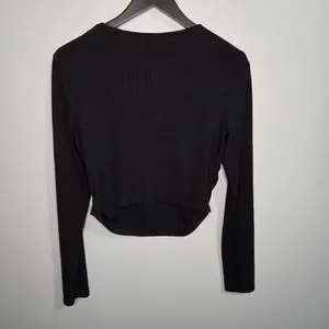 Black Ribbed Long Sleeve Ruched Side Crop Top - Size Large