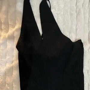Stylish black ribbed one shoulder mini dress. High stretch material and comfortable. Thin straps