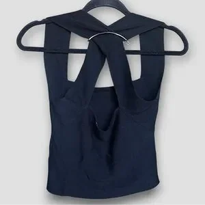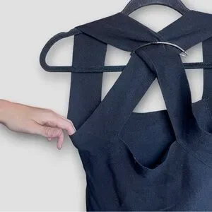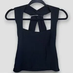 Black Ribbed Open-Back Top | Thick Knit | Size S