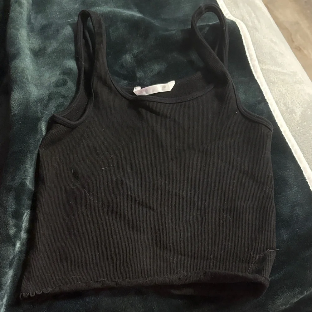 This stylish black ribbed tank top is perfect for any casual outing. Its sleek design offers comfort and versatility.
