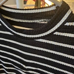 Stylish black and white striped crop top. Sleeveless design. Perfect for casual outings.