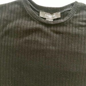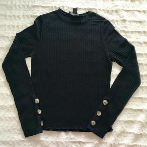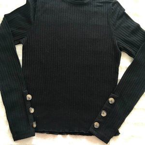 Black Ribbed Top , Full Sleeves with button ( just for show )