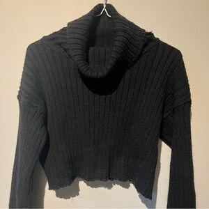 Stylish black ribbed turtleneck sweater. Cozy and chic.