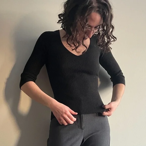 Vneck, 3/4 sleeves, ribbed fabric, XS/S very stretchy, good condition