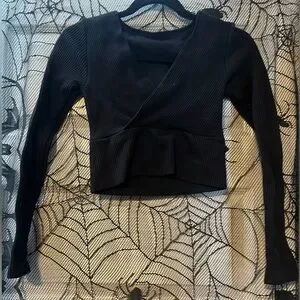 Black Ribbed Wrap Top