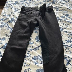 Stylish black riding pants with a sleek design. Perfect for equestrian activities.