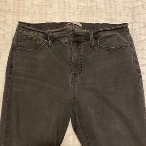 Black ripped jeans from madewell size 32 tall. high-rise skinny. 2 rips on knees and ripped ankles.