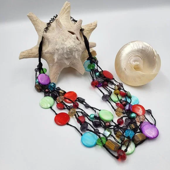Black Rope Multistrand with Multi-Colour Beads