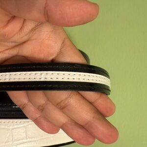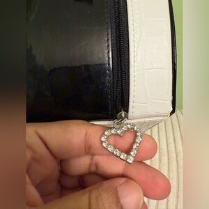 Black Round Handbag with pink silk polka dots lining