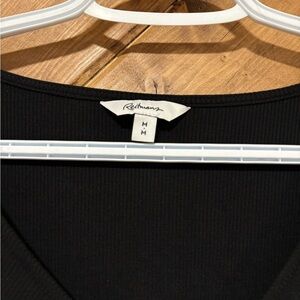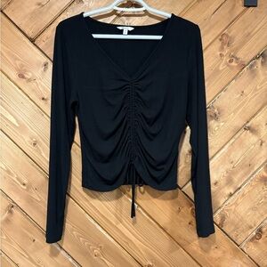 Black Ruched V-Neck Long Sleeve Top. Reitmans