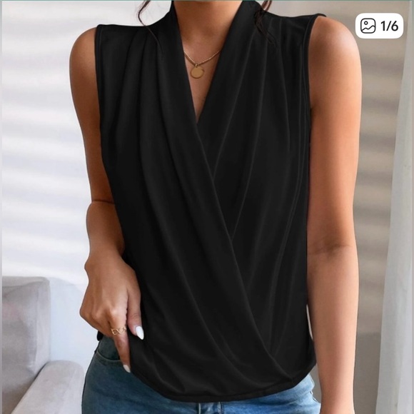 Black Ruched Wrap Tank Top