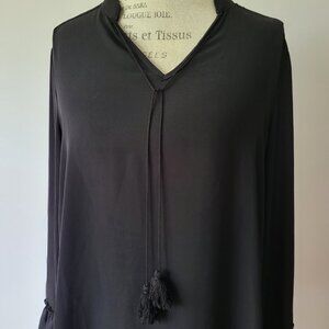 Black Ruffle Blouse with neck tassel detailing - Size L