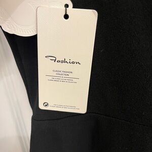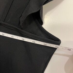 This elegant black dress features stylish ruffles for a sophisticated look. Perfect for any occasion.