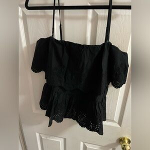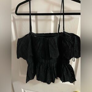 This elegant black ruffle top is perfect for any occasion. Its stylish design adds a touch of sophistication to your wardrobe.