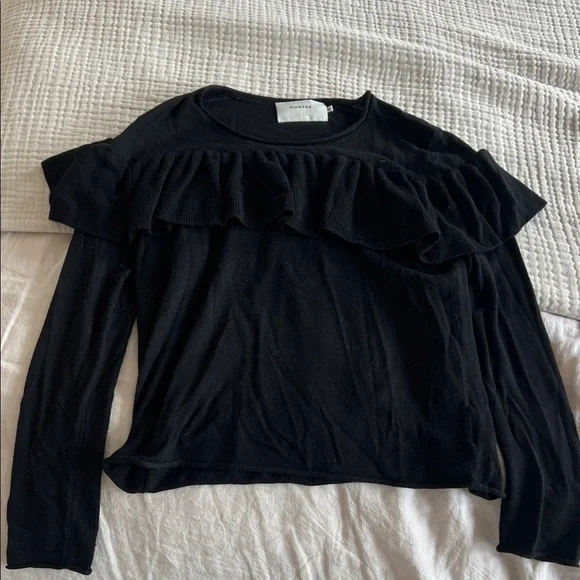 Elegant black sweater with stylish ruffle detail, from Copenhagen. Perfect for any occasion.