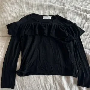 Black Ruffled Long Sleeve Top