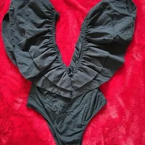 Black Ruffled One-Piece Swimsuit