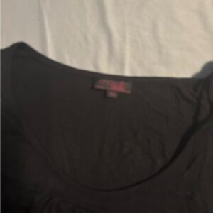 Sleeveless black tank with layered ruffle detail. Soft, lightweight fabric. Simple and versatile for layering.