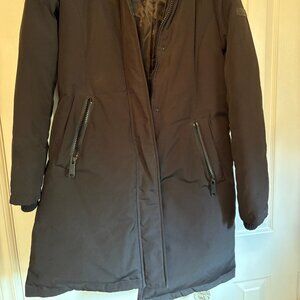 Selling a black Sam Edelman parka coat in a women's size medium. This coat is in good condition and is perfect for staying warm in colder weather.