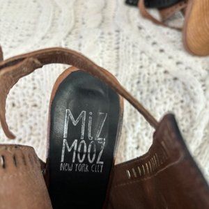 Great pair of Miz Mooz black sandal with so much to look at. Leather, brown detail straps and heals to match, super comfortable. So many things to talk about.