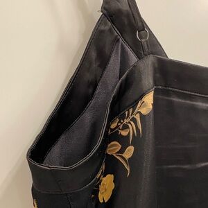 Black Satin Camisole Gold Floral Print Tank Top Luxe Y2K Sz S/M