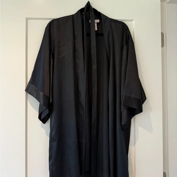 Experience the effortless elegance of the La SENZA Black Kimono-Style Jacket. This versatile piece features wide, flowing sleeves and a draped open front, perfect for layering. Crafted from a soft, lightweight fabric, it offers a comfortable fit with a minimalist aesthetic.