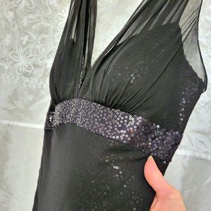 Black Sequin Evening Gown, Silk Chiffon Overlay, Aidan Mattox, 4