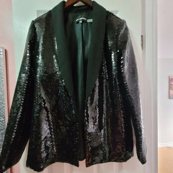Beautiful sequin, fully lined Tuxedo style jacket.