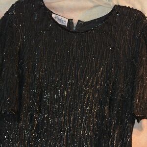 Gorgeous short sleeve sequinned dress by Andrea. There is no size tag inside but I suspect it is a Large. Please contact me for measurements before you purchase.